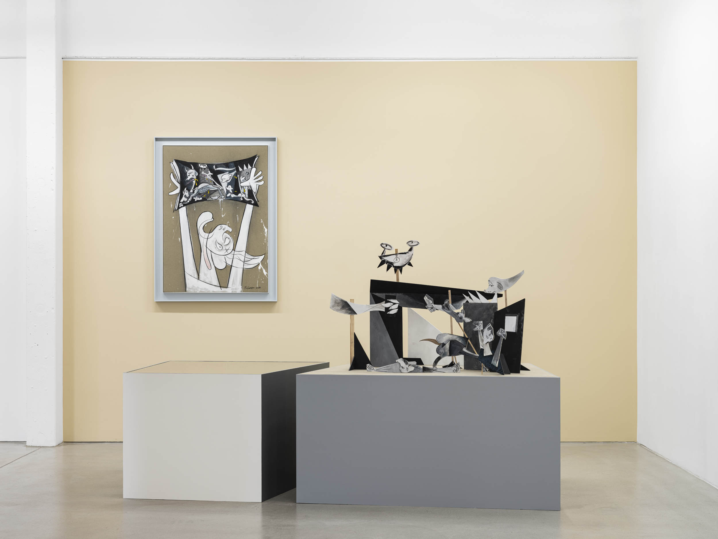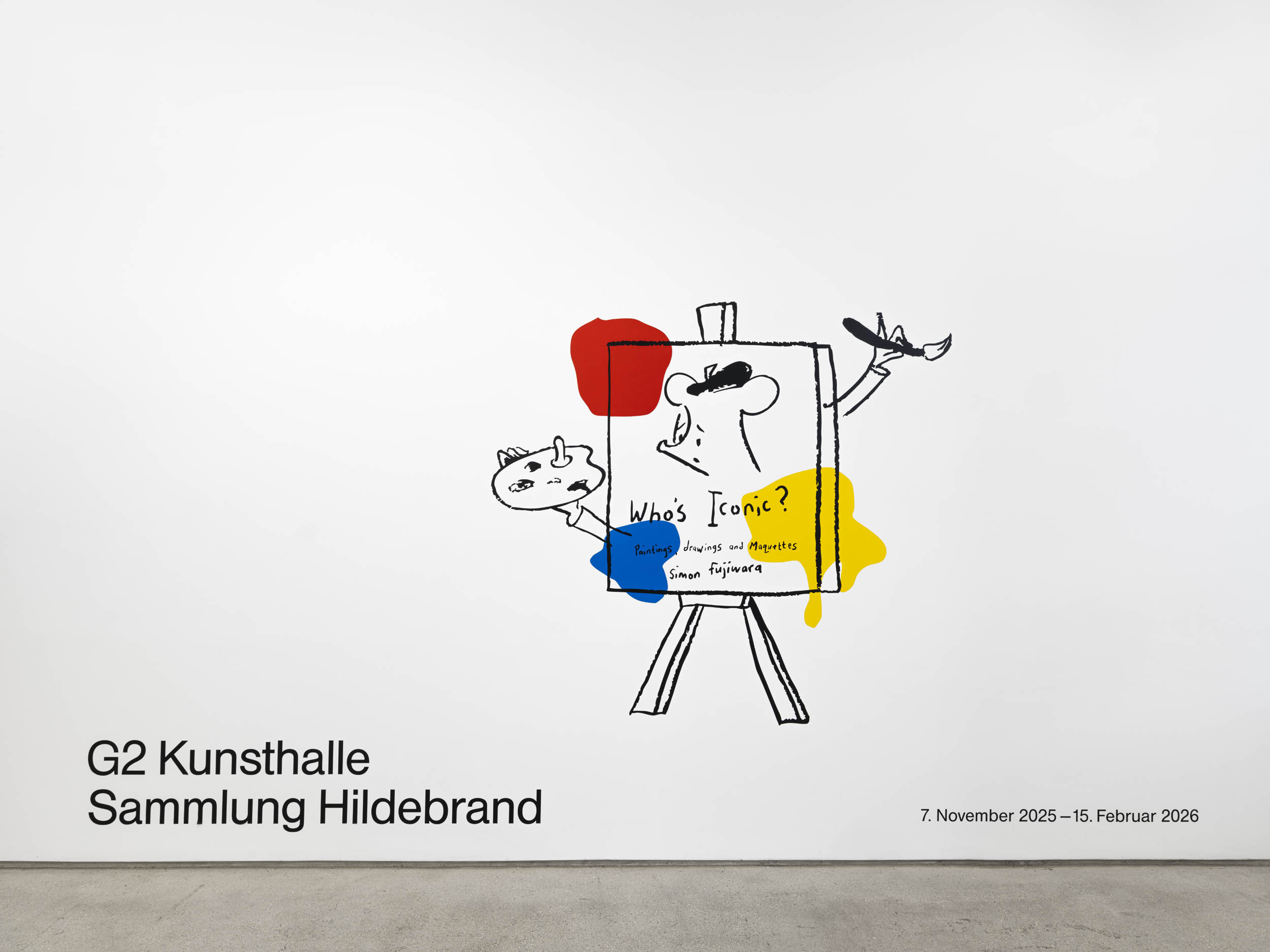With Who’s Iconic? – Paintings, Drawings, and Maquettes from the Whoseum of Who the Baer, G2 Kunsthalle presents a solo exhibition by the British-Japanese artist Simon Fujiwara (*1982). The exhibition, for the first time, focuses on the artist’s painting practice as well as the creative process behind the works: presenting drawings and maquettes which serve as studies to accompany the paintings.